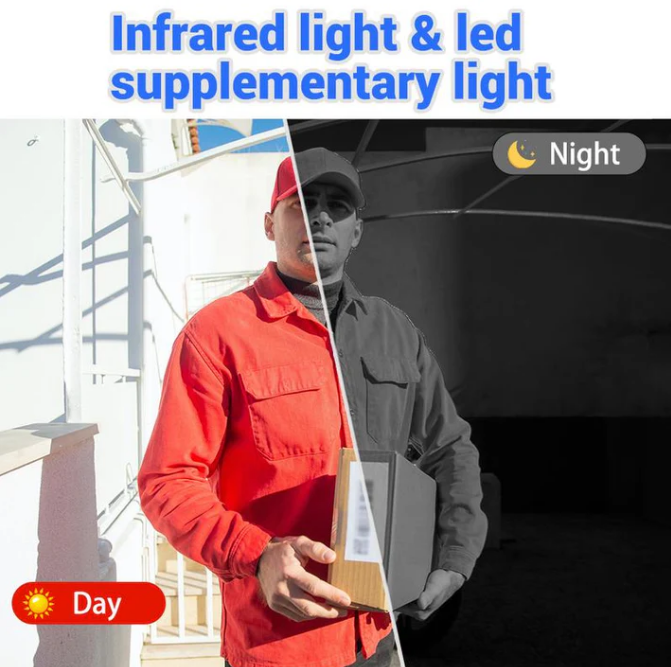 INFRARED NIGHT VISION: Equipped with advanced infrared technology, this doorbell automatically adjusts to provide clear visibility in low light conditions. It switches seamlessly between day and night modes, ensuring you can always see who’s at your door, regardless of the time.