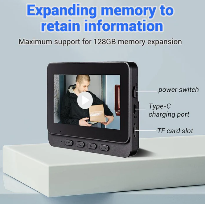 PHOTO AND VIDEO RECORDING: Capture and store important moments with automatic photo capture and video recording. After pressing the doorbell, the monitor takes a snapshot and records video footage, with new ones overwriting the oldest for easy access to only the most recent events.